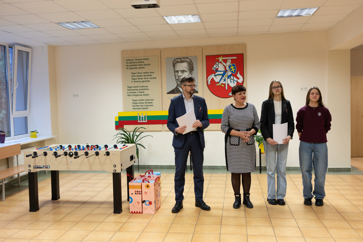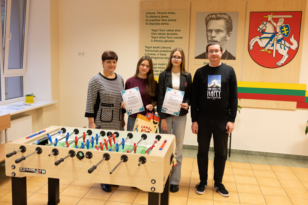 Po administracinės atitikties vertinimo ir viešos atrankos organizavimo visų gimnazijos mokinių slaptu balsavimu buvo išrinktas projektas–nugalėtojas. Juo tapo G2b klasės mokinių Gabrielės Mickevič, Emilijos Gunevič ir Kamilos Kimsevič projektas „Pertraukos su futbolo stalu – aktyvus poilsis gimnazijoje“. Šio projekto dėka gimnazija įsigijo futbolo stalą, o gruodžio 16–20 dienomis buvo organizuotas stalo futbolo turnyras, kuriame dalyvavo 5–G4 klasių mokiniai.