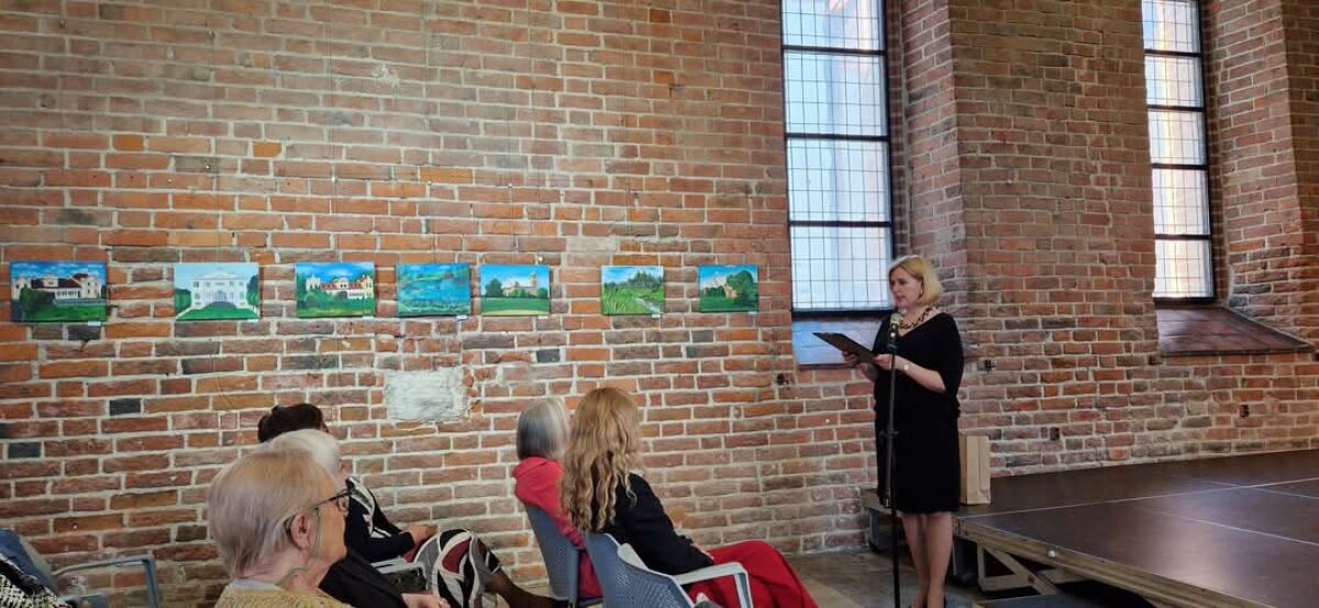 Delegacija taip pat lankėsi Elbingo bibliotekoje, kur gegužės 5 d. vyko mokinių kūrybos darbų parodos „Vilniaus regiono dvarai ir Rudaminos peizažai“ atidarymas. Parodą pristatė dailės mokytoja Ivona Dakinevič, kuri taip pat skaitė metodinį pranešimą meno mylėtojams, žinomiems visuomenės veikėjams ir profesoriams tema „Tapybos pleneras kaip pedagoginė priemonė: kūrybinės raiškos skatinimas meno mokykloje“.