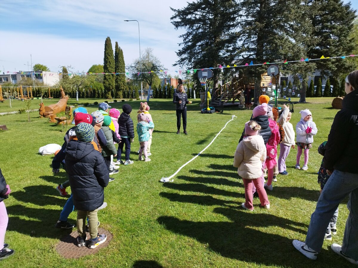 Renginį paįvairino, organizuotos Vilniaus r. Nemenčinės vaikų lopšelio-darželio „100 spalvų“ judesio korekcijos mokytojos N. Šeluchovskajos, smagios sportinės estafetės, kuriose dalyvavo pastarosios įstaigos „Ežiukų“ grupės ugdytiniai ir atvykę svečiai.