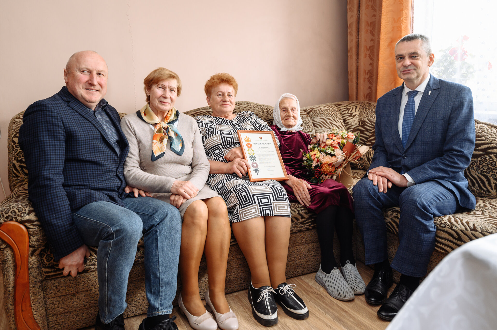 „100 metų jubiliejus yra ne tik asmeninė šventė, bet ir svarbus įvykis visai Vilniaus rajono bendruomenei. Dėkojame už sukauptą išmintį, patirtį ir stiprybę, parodytą šiame ilgame ir prasmingame gyvenimo kelyje. Linkime stiprios sveikatos džiaugiantis kiekviena akimirka, artimųjų meilės ir šilumos“, – kalbėjo vicemeras A. Vaitkevičius.